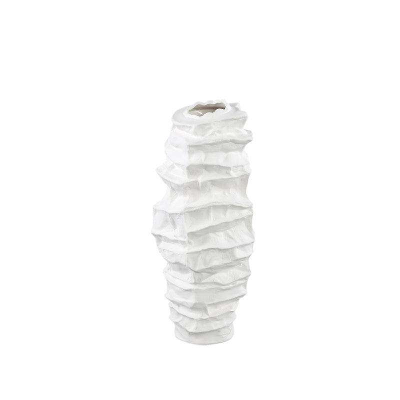 Aharon White Ceramic Irregular Shaped Vase Slim S