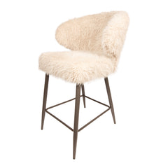De Ares barkruk is een statement piece met een opvallende harige bekleding die luxe en textuur toevoegt aan elk interieur. Het stoere metalen onderstel vormt een mooi contrast met de zachte, aaibare stof. Dankzij de comfortabele zit en de elegante rugleuning is Ares zowel stijlvol als functioneel. Een perfecte keuze voor een hotel chique bar of high-end keukenruimte.