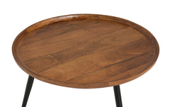 Benny salontafel Ø75, met metalen poten, is vervaardigd van massief mangohout in een Ginger-afwerking met lak. De poten zijn gemaakt van zwart gepoedercoat metaal. De tafel heeft een diameter van 75 cm en een hoogte van 40 cm. Met zijn eigentijdse design en hoogwaardige materialen is deze salontafel een stijlvolle toevoeging aan elk interieur.