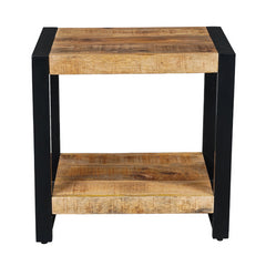 Bijzettafel Boaz met onderblad is gemaakt van mangohout en metaal. Het mangohout wordt behandeld met een blanco lak. De metalen poten zijn afgewerkt met een zwarte lak.Afmetingen: Breedte : 60 cm Diepte: 60 cm Hoogte: 45 cm