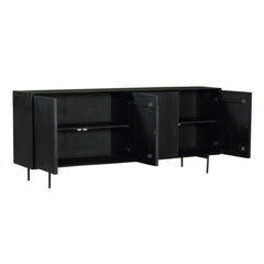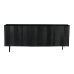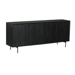 Dressoir 'Madison' is gemaakt van mangohout met een metalen frame in zwarte lak. Voorzien van vier deuren met verticaal lattenpatroon. Afmetingen: Breedte: 210 cm, Diepte: 45 cm, Hoogte: 85 cm. Onderhoud: Afnemen met een lichtvochtige doek.