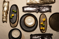 Jowad Antique Gold Alu Sheet Bowl Ribbed Oval L