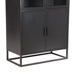 De Hoge vitrinekast Level van LABEL51 is een trendy industriële kast met strakke vormen, in zwart metaal en glas. Het biedt vier ruime opbergplanken, magnetische metalen deuren en een open frame voor een eigentijds design. Perfect voor woonkamers, keukens of kantoren.
