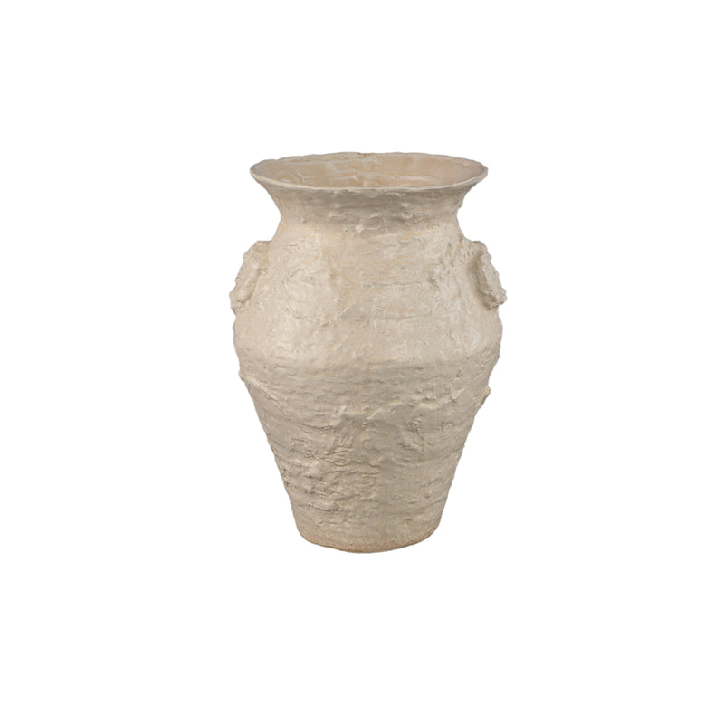 Leandra Beige Round Ceramic Jar Rough Structure M