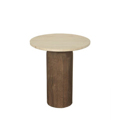 Liora Brown Mango Wood Side Table Marble Top Rnd