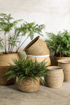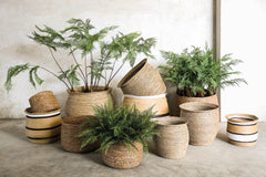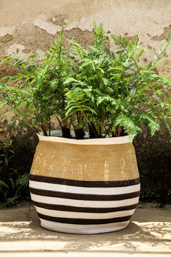 Melano Brown Paper Rope Round Basket W Lines SV3