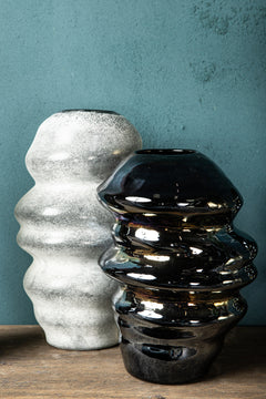 Orietta Blue Oily Look Glass Vase Wavy Round S