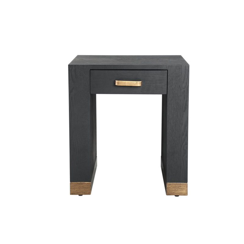Tiess Black Wooden Veneer Bed Sidetable 1 Drawer