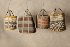 Toccara brown jute round basket lines pattern l