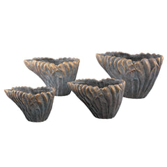 Vakas Grey Cement Oval Wavy Vase W Gold Border L