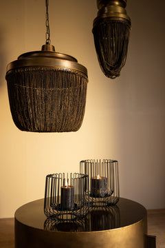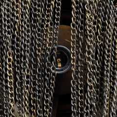 This lamp is a real eyecatcher. As heavy as it looks, it is! High quality materials have been used to create this item. A lot of chains are used to create a nice and unique light. These chains already very heavy themselves. Therefore this lamp is strong, steady and from heavy weight. The small size we are selling has a weight of 8,5 kg and the bigger size has a weight of 12 kg. This lamp contains a 2 core fitting type with a maximum of 40 Watt. The light is not dimmable and the length of the chain is about 100 cm long. The diameter of the cover cap is 11 cm.